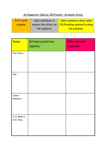 Irony worksheet for middle school