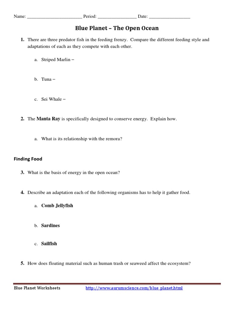 Blue planet the open ocean worksheet answers