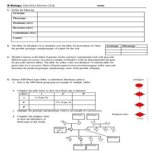 Codominance worksheet blood types. Exam 3 practice test Flashcards | Quizlet Study with Quizlet and memorize flashcards containing terms like Which of the following was not one of Mendel's main inferences from his research? A) The basic units of genetics are material elements. B) The genetic material elements come in pairs. C) Genes are lengths of DNA. D) The genetic material elements can retain their character through many generations. E) The genetic material elements ... ALEX | Alabama Learning Exchange Students will compare and contrast similarities between the eight different human blood types and be able to explain how these differences affect blood transfusions. Students will complete the online modules in The Blood Type Game and hunt for answers to a worksheet on The Red Cross website. Science_G8_Learners_Module - YUMPU Dec 07, 2015 · Now, imagine a vertical line from the focus to the uppersurface of the model. Mark the place where you expect the line to come out.The spot directly above the focus on the surface of the Earth is called theepicenter. Show the “epicenter” of your model to your teacher.Q9. Use your model to show different types of movement along a fault. Monohybrid Cross Problem Set - University of Arizona Genetics is the study of heredity and variation in organisms. We begin with a study of the monohybrid cross, invented by Mendel. In a monohybrid cross, organisms differing in only one trait are crossed.