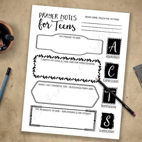 Prayer Worksheets | Teachers Pay Teachers 39. $5.25. PDF. Activity. Here's a large pack of worksheets and other items for the five types of prayer. There are not only worksheets, but charts, posters, and more. The posters cover the "prayer hand" and the types of prayer with definitions. There are even activities for hand symbols for the types of prayer. Items. Prayer Worksheet for Teens - Etsy Check out our prayer worksheet for teens selection for the very best in unique or custom, handmade pieces from our shops.