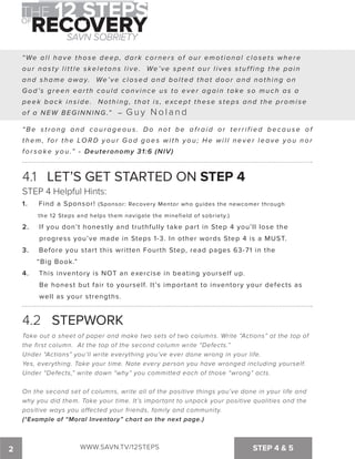 Understanding Step 4 of the 12 Steps - Verywell Mind Updated on September 14, 2020. Medically reviewed by. John C. Umhau, MD, MPH, CPE. Getty Images. There is a saying in the 12-step programs that recovery is a process, not an event. The same can be said for Step 4: "Made a searching and fearless moral inventory of ourselves." Whether we come through the doors of Alcoholics Anonymous or Al-Anon ...