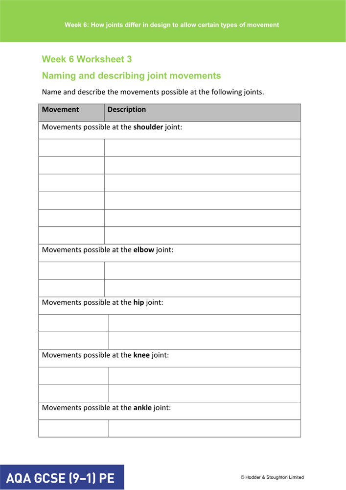 Joints And Movement Teaching Resources | Teachers Pay Teachers This worksheet gets students understanding the different terminology for specific movements at the main joints of the human body.The students have to describe what is happening at the joint and then create a HIIT style workout that includes exercises for each of the joint movements.I originally used this as a task for higher ability Year 9 ...