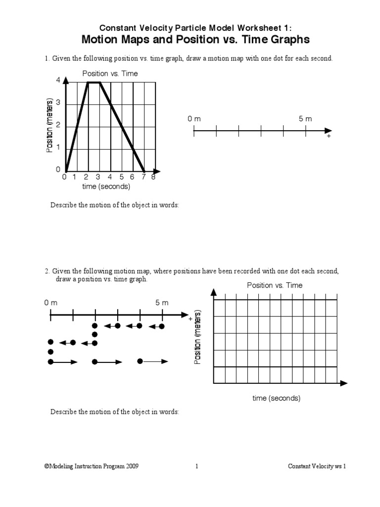 Velocity Vs. Time Graphs And Displacement Worksheet Answers This worksheet packet provides students with practice drawing and interpreting displacement vs time and velocity vs time graphs. As you see on the graph x axis shows us time and y axis shows position. A car travels at a constant 20 m s for 10 s. We observe that position is linearly increasing in positive direction with ...