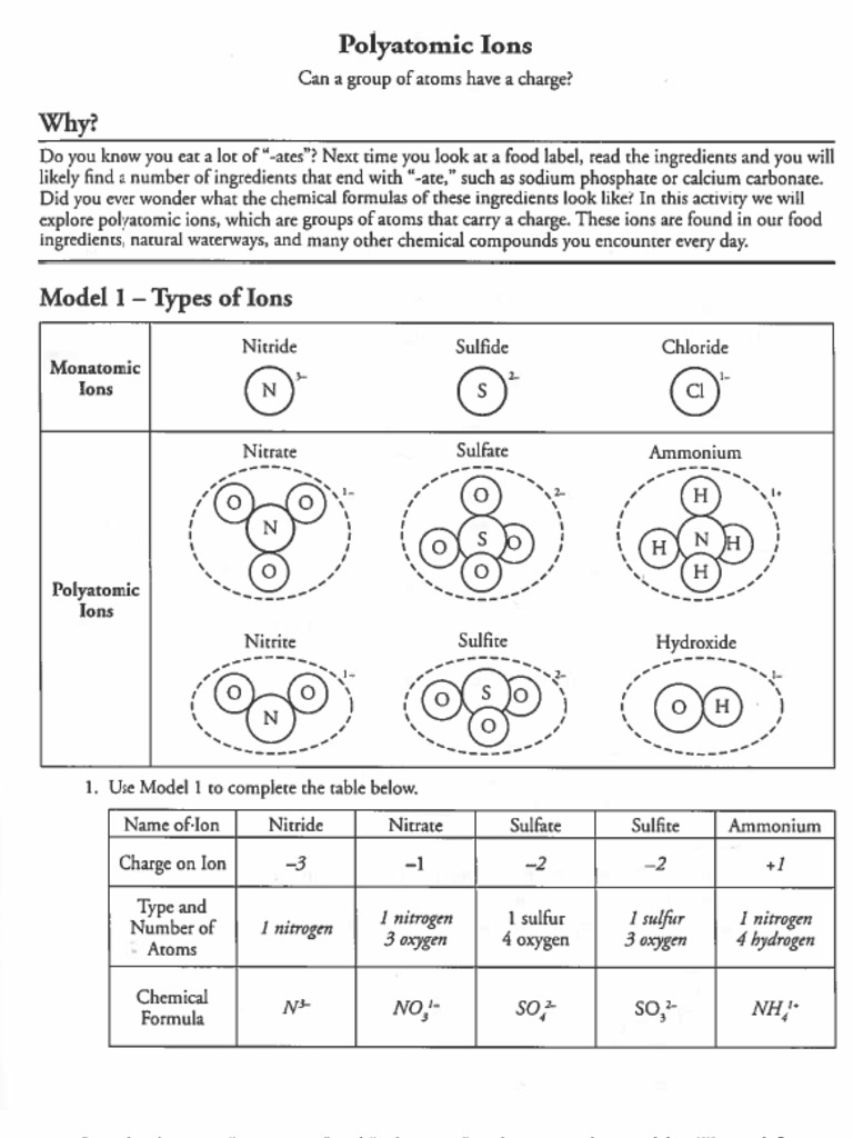 Polyatomic Ions Worksheet Answers | Belfastcitytours.com Monatomic ions are shaped from single atoms which have gained or lost electrons. Formulas for ionic compounds comprise the symbols and number of every atom current in a compound in the lowest complete quantity ratio. He also teaches science research the place he mentors students on their award-winning science fair tasks.