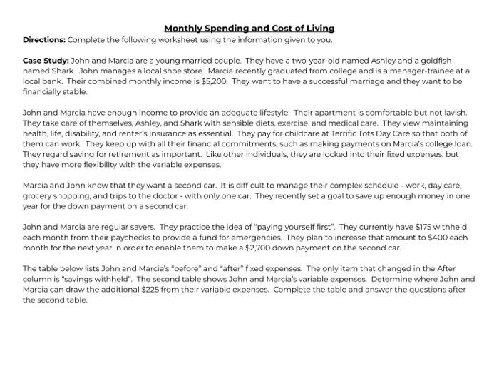 COLA (Cost-of-Living Adjustment) Change Worksheet COLA (Cost-of-Living Adjustment) Change Worksheet. By clicking on the link below, you'll be able to calculate how the pension reform legislation will affect YOU. The Excel worksheet uses the formulas developed by the We Are One coalition. Feel free to share this worksheet with colleagues or coworkers. Information on how to contribute to the ... Cost of Living Worksheet.docx - Cost of Living Objective:... Cost of Living Objective: Students will compare income to the cost-of-living in various geographical areas and the impact it has on purchasing power. Now that we have talked about the cost of living in class, it is your turn to do some research to see the impact that cost-of-living can have on purchasing power in different areas around the United States and the world. 5A Practice - Cost of living worksheet - StuDocu The average annual costs of living in California, New York, and Texas are displayed in the following table. State Average Annual Cost of Living. California (CA) $57, New York (NY) $60, Texas (TX) $40, Compute the ratio for the annual cost of living for each pair of states and reduce to unit ratios. (Round to the nearest hundredth.) Part A: CA to NY Cost of Living worksheet - Cost of Living Worksheet Your... - Course Hero Cost of Living Worksheet Your job: Sales Representative Average Salary: $36,000 annually / $3,000 monthly.Note: these are pre-tax amounts, so your take-home pay will be roughly $2,000 monthly.Based on your salary, what percentage of your monthly take-home pay will go to each of the following expenses? You will use $2,000 as your total take-home pay for the month.