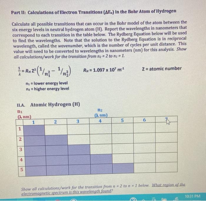 Energy Levels & Photon Emission | A Level Physics Revision Notes If a spectrum is produced by the emission of light from a light source (tungsten filament lamp), it is called an emission spectrum. Electrons in an atom can have only certain specific energies. These energies are called electron energy levels. Downward transition from higher energy levels to lower energy levels results in the emission of photons. Emission Spectrum - Definition, Types, Examples - BYJUS The hydrogen emission spectrum consists of radiations of discrete frequencies. These series of radiations are named after the scientists who discovered them. When a photon is absorbed by a hydrogen atom, the energy of the photon causes the electron to undergo a transition to a higher energy level (n = 1 n = 2, for example). Emission Spectra and Energy Levels Worksheet - Studyres Thus, emission spectra are experimental proof that electrons exist in definite, distinctive energy levels in an atom. Questions: 1. How can the difference in the brightness of spectral lines be explained? 2. According to the modern theory of the atom, where may an atom's electrons be found? 3. How do electrons become "excited"? 4. lab methods emission spectra and energy levels practice answer key Doc ... The lab methods emission spectra and energy levels practice answer key is a document that has to be filled-out and signed for specified purpose. In that case, it is furnished to the exact addressee to provide specific details and data. The completion and signing is available or via an appropriate application e. g. PDFfiller.