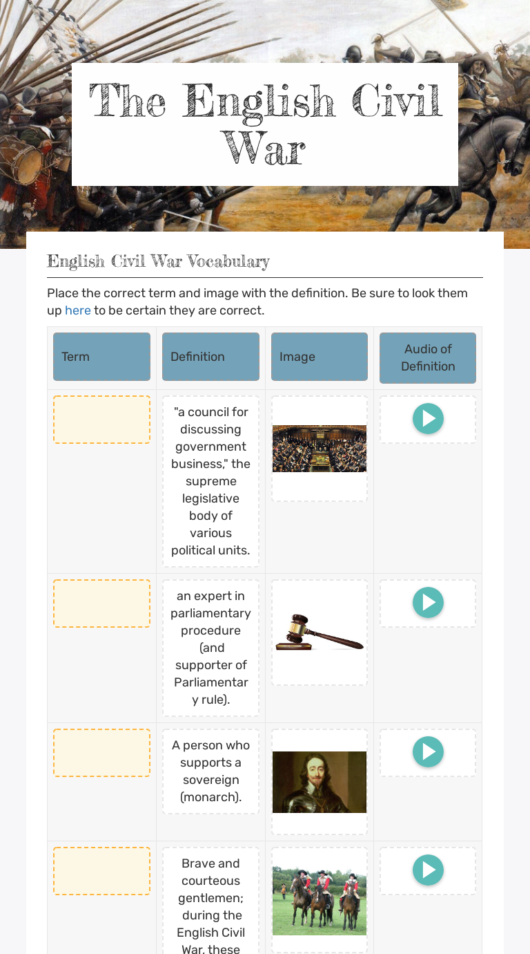 Civil war vocabulary worksheet. Civil War Vocabulary | Worksheet | Education.com - Pinterest Aug 14, 2012 - Review vocabulary terms from the Civil War with this matching worksheet! Your student will match each term with its correct definition. Civil War Vocabulary - Vocabulary List | Vocabulary.com Civil War Vocabulary Mrs. Ryles (United States of America) Share 68 words 247 learners Learn words with Flashcards and other activities Other learning activities Practice Answer a few questions on each word. Use this to prep for your next quiz! Vocabulary Jam Compete with other teams in real-time to see who answers the most questions correctly! civil war vocabulary worksheet answers - Microsoft civil rights vocabulary worksheets grade movement activity handout students 99worksheets activities teacherspayteachers. 13 Best Images Of Revolutionary War Worksheets 5th Grade - Civil War . grade 5th history social studies war revolutionary worksheets printable worksheeto vocabulary via. Crash Course 23 Answers - XpCourse Civil War Vocabulary Worksheet - EnglishBix Civil War Vocabulary Worksheet $ 1.00 This worksheet tests your child's knowledge about vocabulary relating to the civil war. Add to cart Category: Vocabulary Want a discount? Become a member by purchasing Monthly Membership or Annual Membership ! Description Reviews (0)